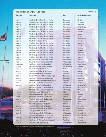 Presidentes da SADC 19802020 Tabela 3.4