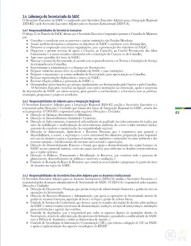 responsável pelos elementos administrativos do Secretariado da SADC. O DES-CA é responsável pelas seguintes