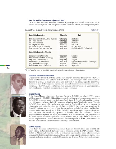 Secretários Executivos e Adjuntos da SADC Tabela 3.5