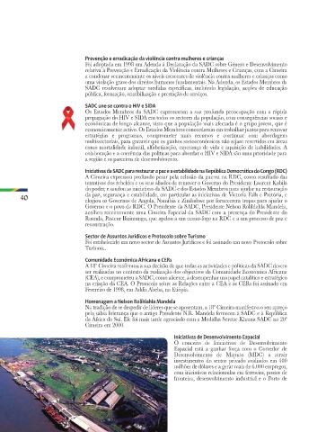 40 da paz, segurança e estabilidade, em particular as iniciativas de Victoria Falls e Pretória, e