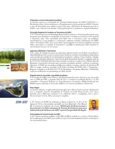 68 Niño na região, conforme acordado na Reunião Consultiva da SADC sobre a Preparação e