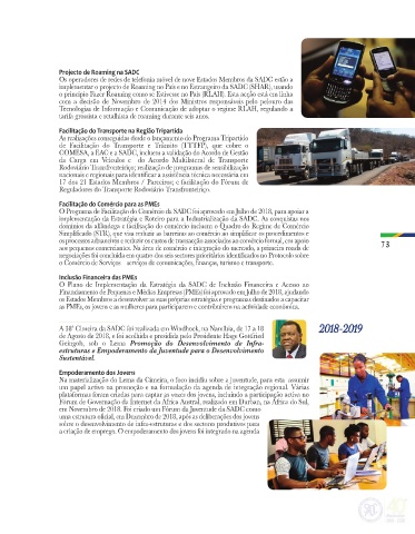 em Novembro de 2018. Foi criado um Fórum da Juventude da SADC como