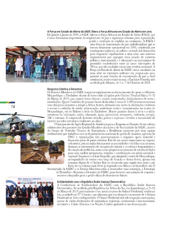 De Janeiro a Junho de 2019, a SADC liderou a Força Africana em Estado de Alerta (FAEA), que