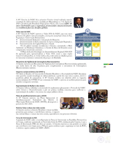 2020 e presidida pelo Presidente Filipe Jacinto Nyusi, sob o Lema SADC: 40