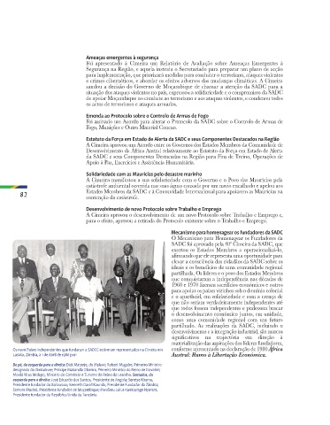 82 Estados Membros da SADC e à Comunidade Internacional para apoiarem as Maurícias na