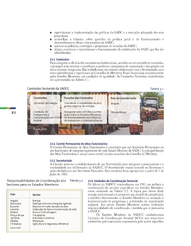Comissões Sectoriais da SADCC Tabela 3.1