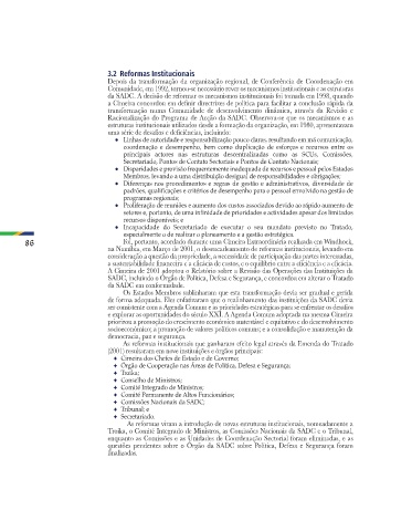 da SADC. A decisão de reformar os mecanismos institucionais foi tomada em 1998, quando